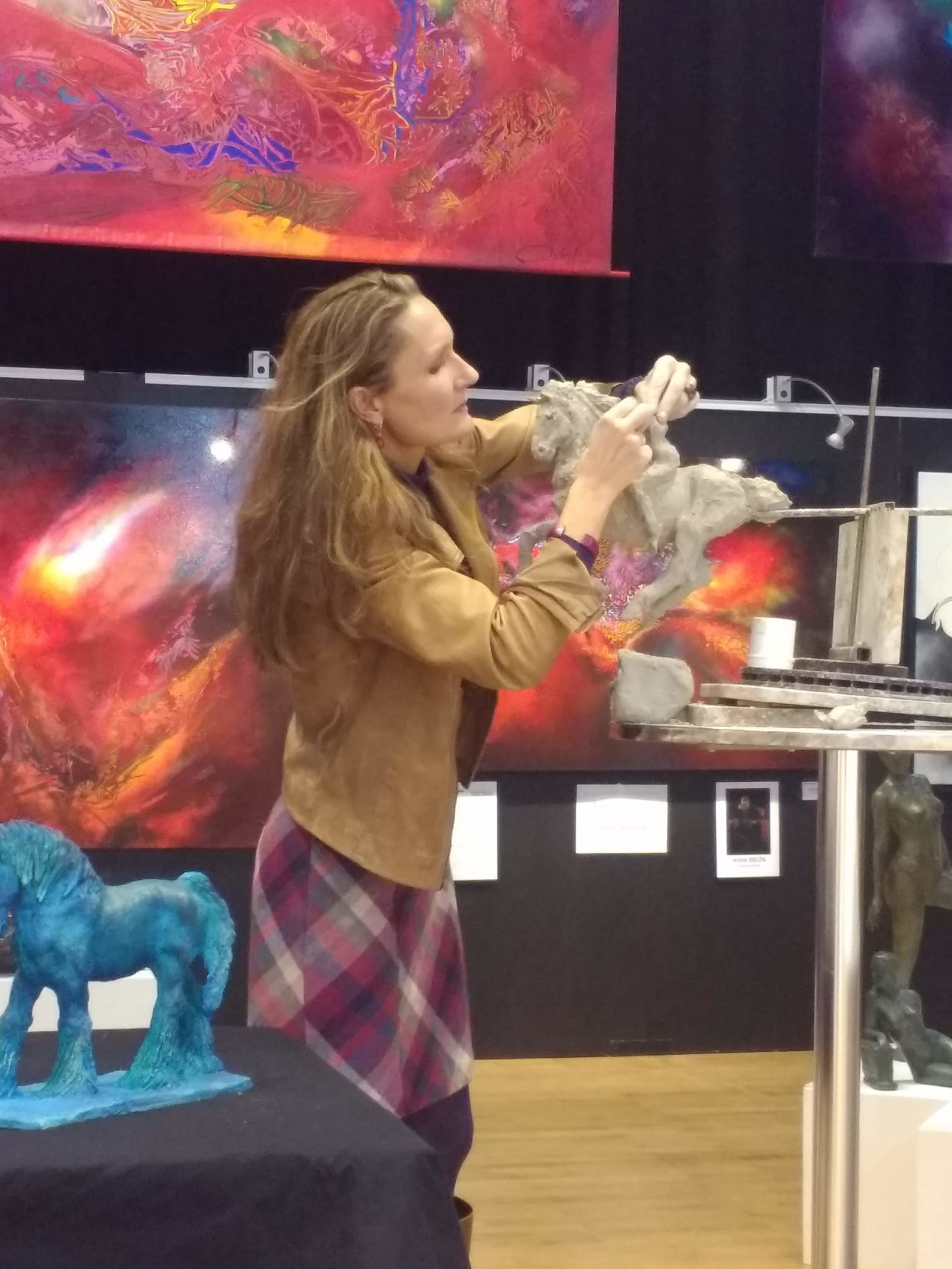 Samedi 16 novembre 2019, à 15h, au 29° Exposition d’art contemporain de Castelsarrasin, j’ai eu le grand plaisir et privilège de pratiquer le modelage d’un nouvel équidé dans ce magnifique salon. Quel bonheur ! Inspirée par les très belles œuvres des artistes du salon, j’ai savouré avec délice ces quelques heures de passion et de partage avec le public ! Un grand merci à Myriam Dreuihes et Jeanine Bajon-Arnal pour leur accueil et l’organisation de ce magnifique salon.